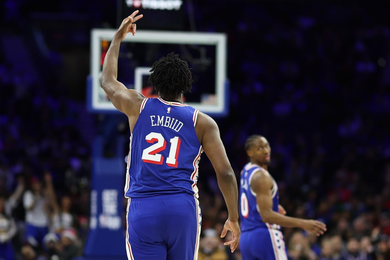 此战,恩比德还创下了纪录。数据显示,这是恩比德生涯第6次砍下30+三双,在中锋位置排名第四,超越奥拉朱旺。排在前三的是约基奇(51)、张伯伦(21)和贾巴尔(8)。
